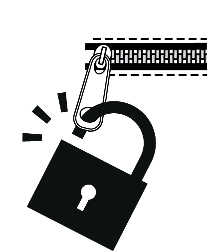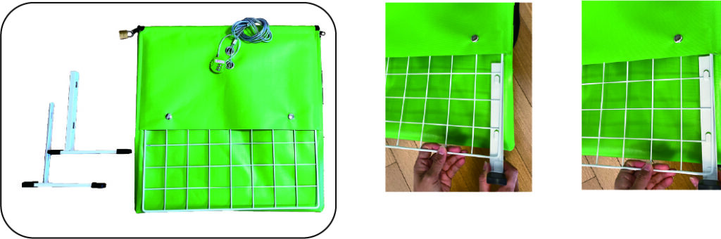 ④南京錠を、ホームセグリーの蓋のジッパーの穴に開錠した状態でひっかけておきます。